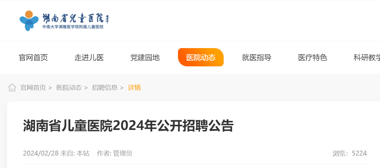 2024湖南省兒童醫(yī)院招聘19人,報(bào)名時(shí)間:2024年3月6日至2024年3月10日。現(xiàn)將招聘公告原文發(fā)布如下: