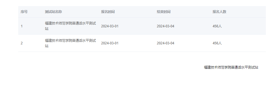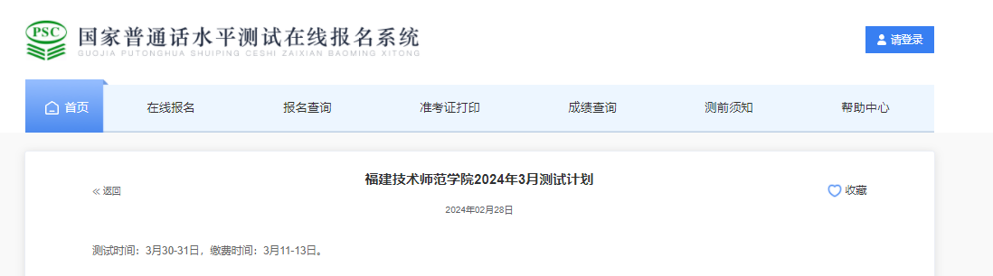 從國(guó)家普通話水平測(cè)試在線報(bào)名系統(tǒng)獲悉,福建技術(shù)師范學(xué)院2024年3月普通話考試時(shí)間為3月30-31日,報(bào)名繳費(fèi)時(shí)間為3月11-13日,具體詳情如下: