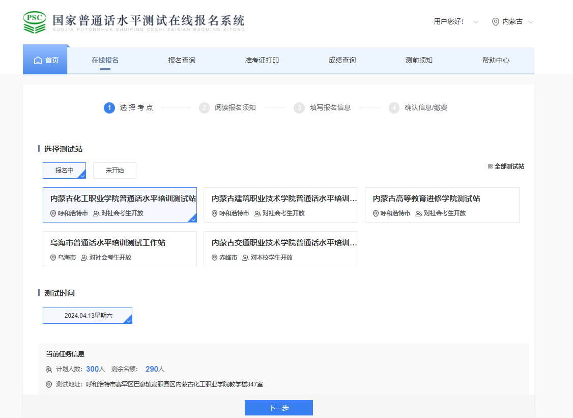 從國(guó)家普通話水平測(cè)試在線報(bào)名系統(tǒng)獲悉,內(nèi)蒙古化工職業(yè)學(xué)院2024年4月普通話報(bào)名入口已開(kāi)通,考試時(shí)間4月13日,具體詳情如下: