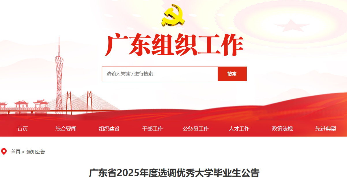 全省共計(jì)劃選調(diào)應(yīng)屆優(yōu)秀大學(xué)畢業(yè)生2046名,報(bào)考者可通過廣東組織工作網(wǎng)(https://www.gdzz.gov.cn)、廣東省人力資源和社會(huì)保障廳網(wǎng)(http://hrss.gd.gov.cn)、廣東人事考試網(wǎng)(http://rsks.gd.gov.cn)或“粵省事”“廣東發(fā)布”“粵講粵政”微信公眾號(hào)查閱具體的招考單位、職位、人數(shù)和報(bào)考資格條件。