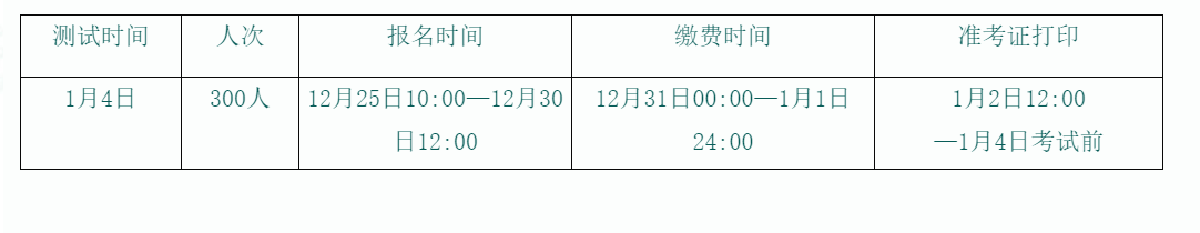 1.測(cè)試日期:1月4日,考試當(dāng)天報(bào)到截止時(shí)間以準(zhǔn)考證上考生須知為準(zhǔn)。