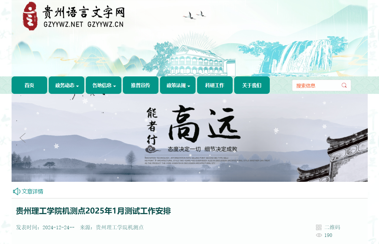 從貴州語(yǔ)言文字網(wǎng)獲悉,貴州理工學(xué)院2025年1月普通話(huà)報(bào)名時(shí)間為2024年12月25日-30日,考試時(shí)間為1月4日,具體詳情如下: