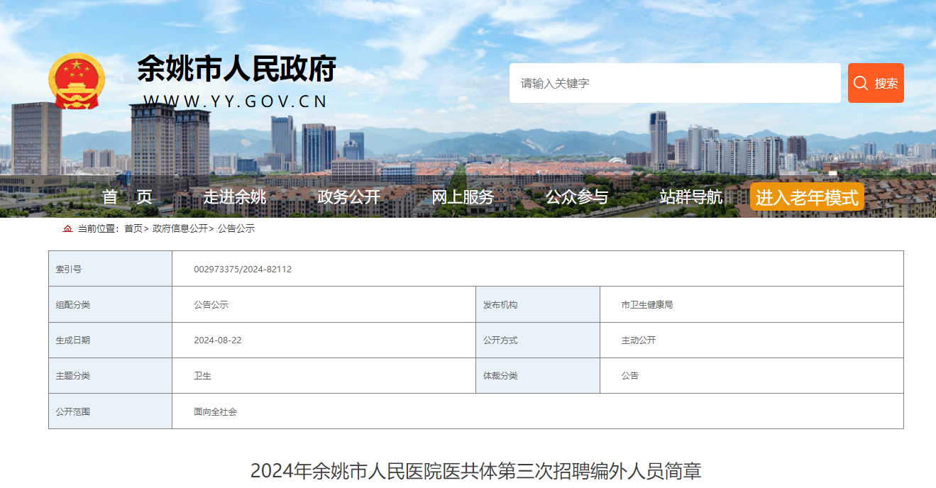 2024年浙江寧波余姚市人民醫(yī)院醫(yī)共體第三次招聘編外人員公告已發(fā)布,報名時間:2024年8月30日,上午8:30-11:30,下午13:30-17:00?,F(xiàn)將招聘公告原文發(fā)布如下: