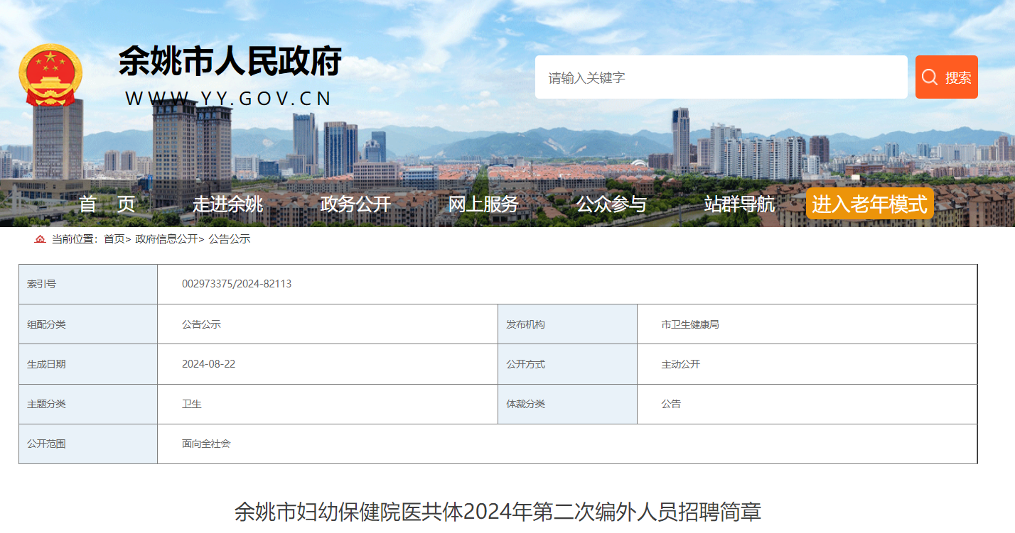 2024年浙江寧波余姚市婦幼保健院醫(yī)共體第二次編外人員招聘簡章已發(fā)布,報名時間:2024年8月29日—30日(上午8:00-11:00,下午1:00-4:00)?,F(xiàn)將招聘公告原文發(fā)布如下: