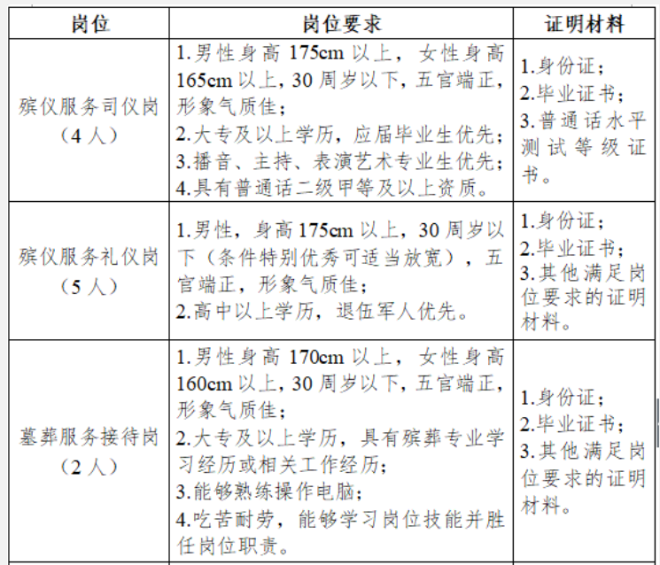 報考者需下載并填寫《長沙市殯葬事務中心勞務派遣人員招聘報名表》(附件),并提供滿足崗位要求的證明材料、2張1寸近期彩色正面免冠照片。